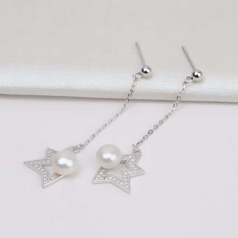 Boucles d'oreilles pendantes tendance Wenchi S925 en argent, motif fleur simple, double perles, accessoires DIY pour femmes