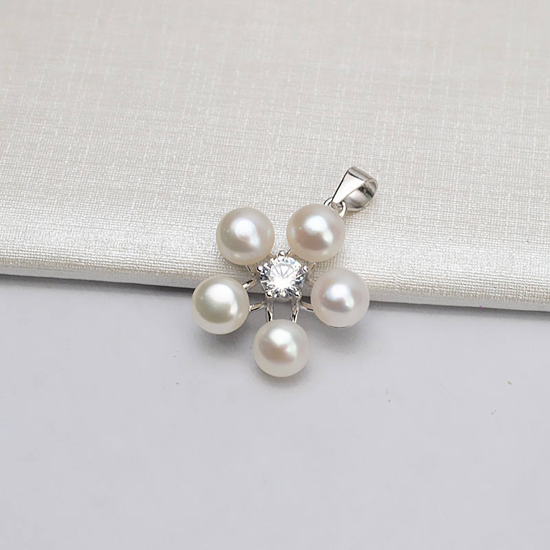 Support de fleur en argent S925 pour 5 perles et pendentif en perle de 7-8 mm, accessoires de bricolage - Support de pendentif vide pour breloques en perles