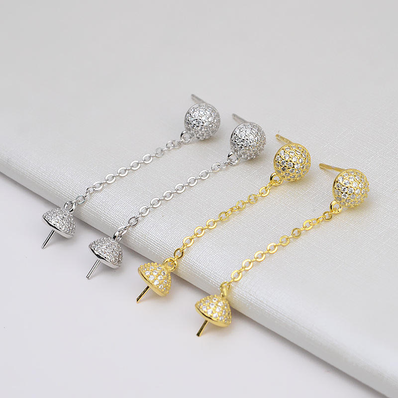 Boucles d'oreilles en argent S925 avec chaîne à pampilles et longue ligne d'oreille, bijoux personnalisés en perles et cristaux pour femmes, accessoires de bricolage, produit vide