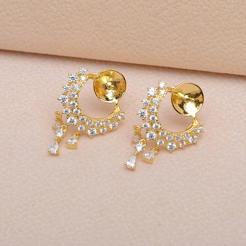 S925 Silver Tassel Earpin Earrings Long Style Female Pearl DIY Jewelry Accessories Empty Tray Semi Finished 896 Crystal Earrings
