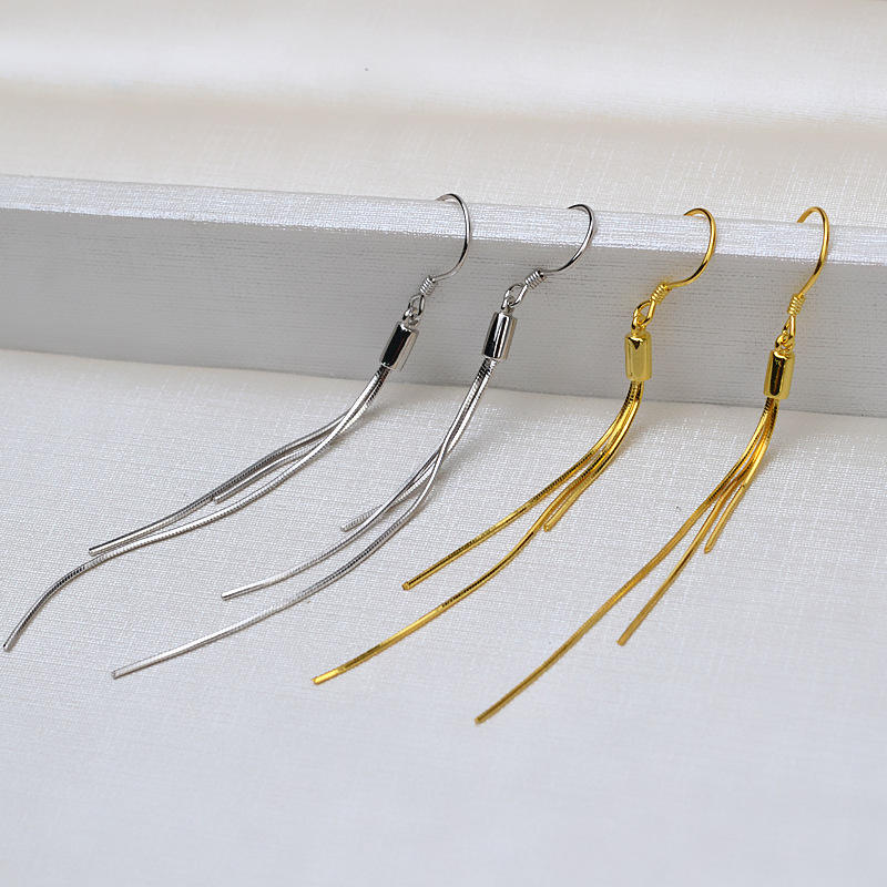 S925 Silver Three Chain Dangle Earrings with Empty DIY Accessories Personalized Pearl Pendant Set Fashion Jewelry