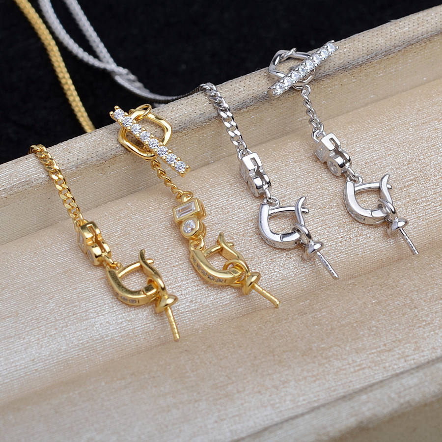 S925 Silver Through-Hole Pearl Necklace Empty Holder DIY Accessory for Pearl Jewelry 5794 Detachable Bead Pan Road Chain