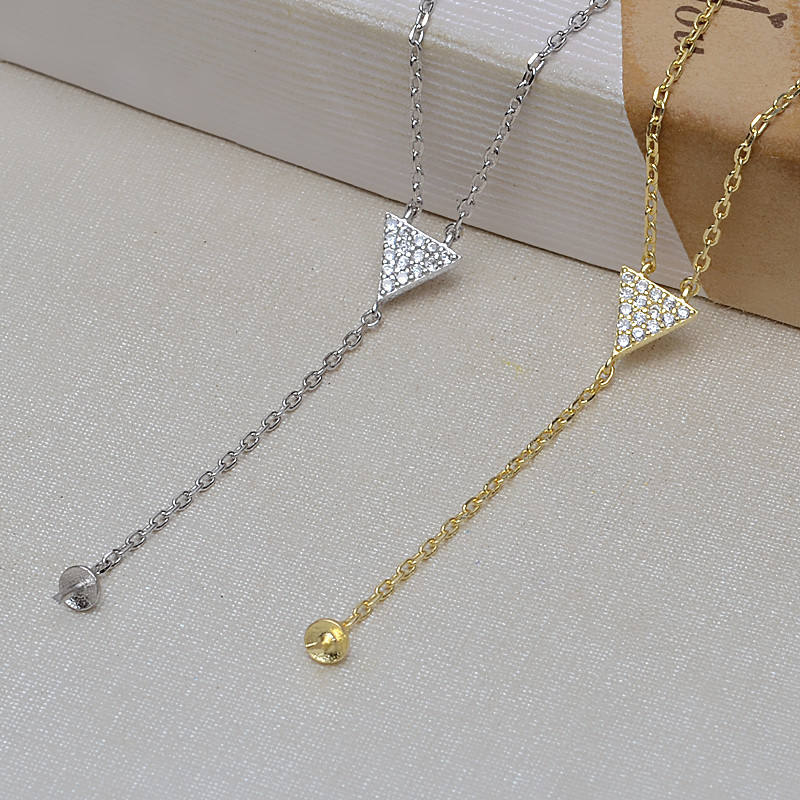 Ensemble de chaîne en argent S925 avec perles triangulaires, accessoires de bricolage avec boucle d'oreille et support en jade, boucles d'oreilles chandelier tendance 3278