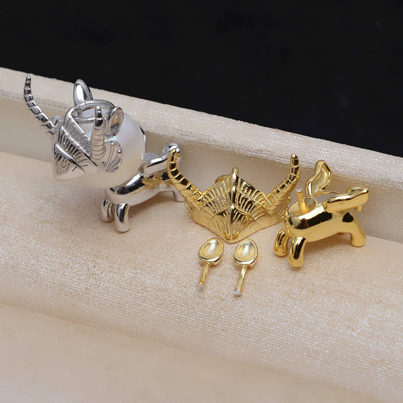 S925 Silver Unicorn Pendant with Baroque Shaped Pearl Necklace Empty Base Women's Fashionable DIY Jewelry Accessory 4331