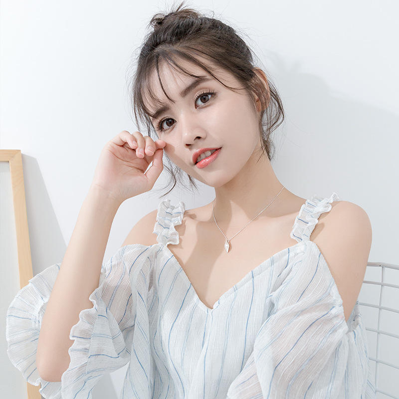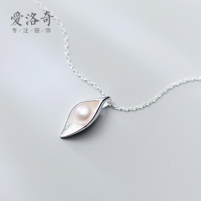 Collier en argent S925 en forme d'épi de blé en Y avec pendentifs et breloques en perles de style campagnard D5800