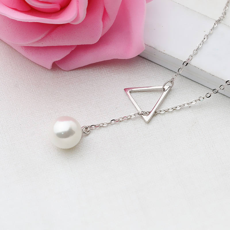 Collier pendentif triangulaire en argent S925 pour femme avec support creux en perle et chaîne de clavicule, accessoire DIY