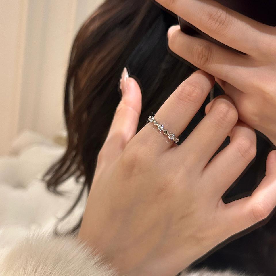 S925 Sterling Silver Dotted Star Round Bead Diamond Ring High-End Fashion Rings Designed for Women