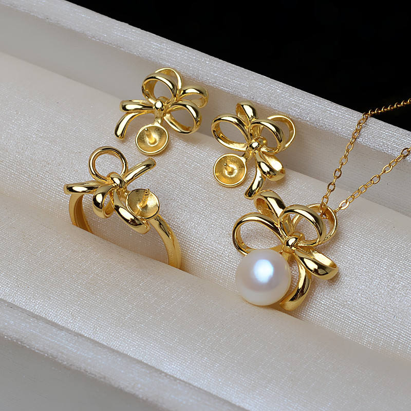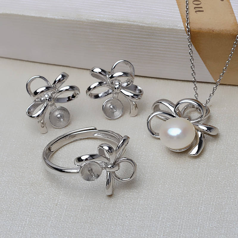 S925 Sterling Silver Fashion Jewelry Set DIY Accessories Hot Bar Style Pendant Earrings 7-9 Fetal Hair Pearl Empty Holder for