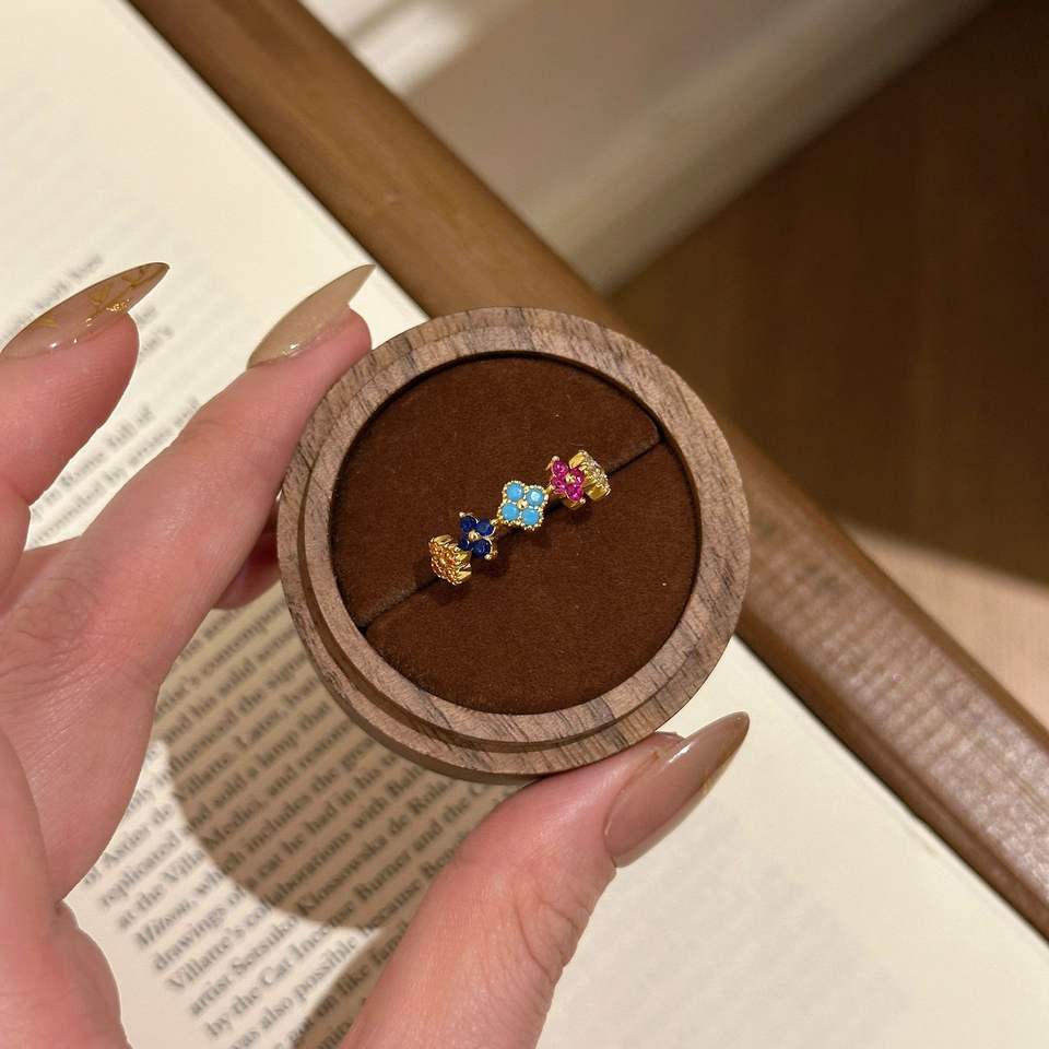 S925 Sterling Silver Fashion Ring Colorful Rainbow Four Leaf Flower Design with Diamond Inlaid Clover Sweet Niche Inlay