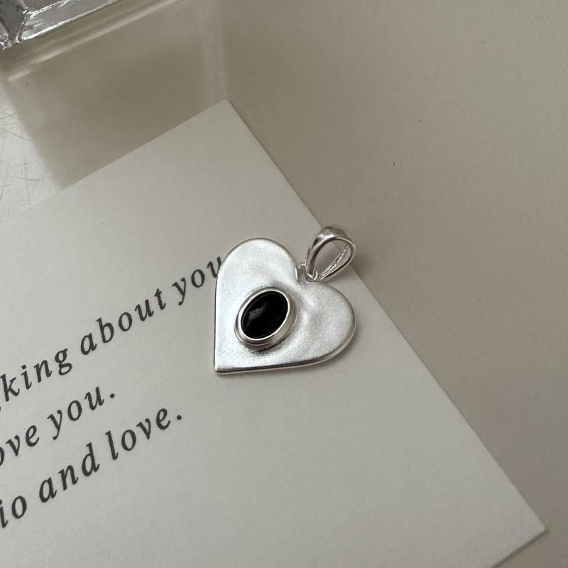 S925 Sterling Silver Fine Pendant Necklace Retro Simple Side Design with Frosted Love Korean Version Niche Fashion Blogger Style