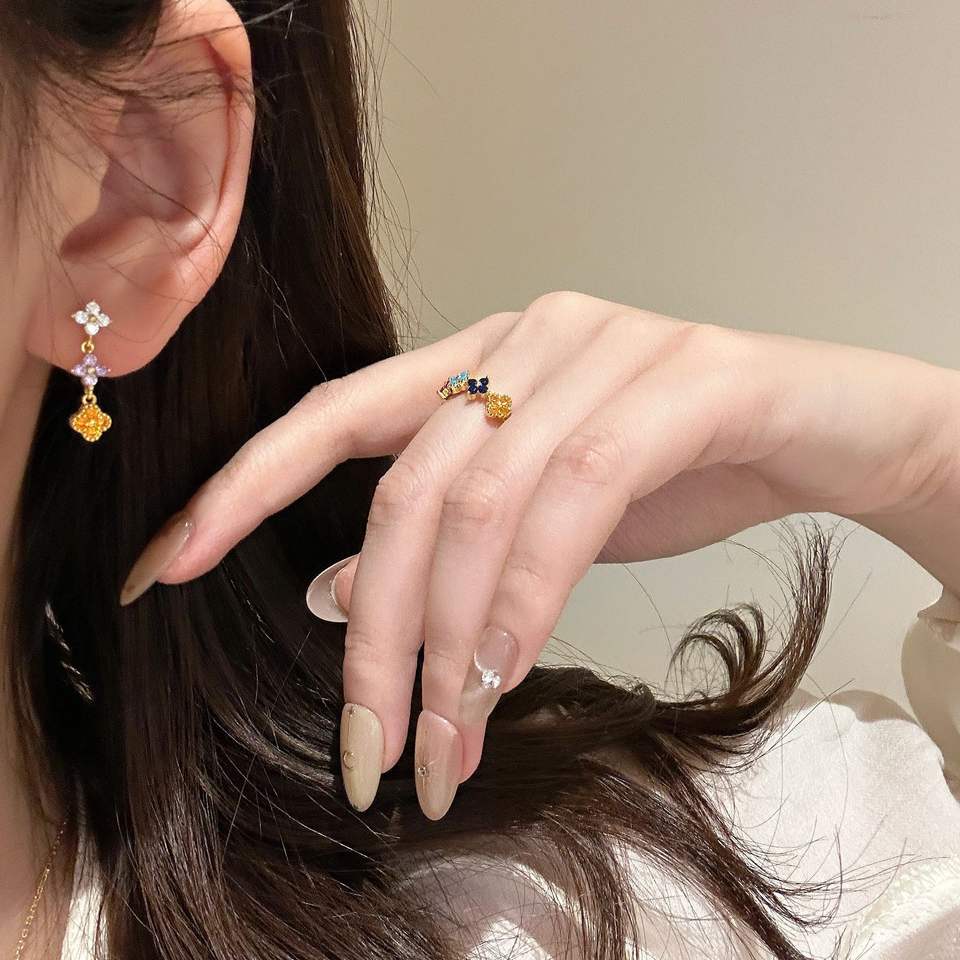 Boucles d'oreilles en argent sterling S925, trèfle à quatre feuilles, boucles d'oreilles pendantes serties de diamants colorés, accessoire de mode doux et chanceux