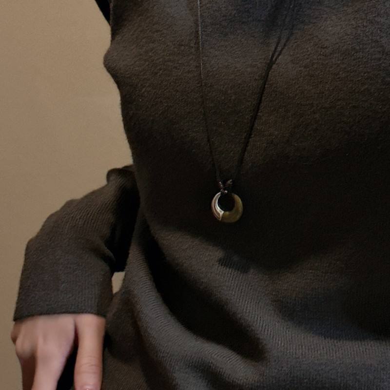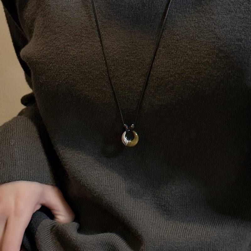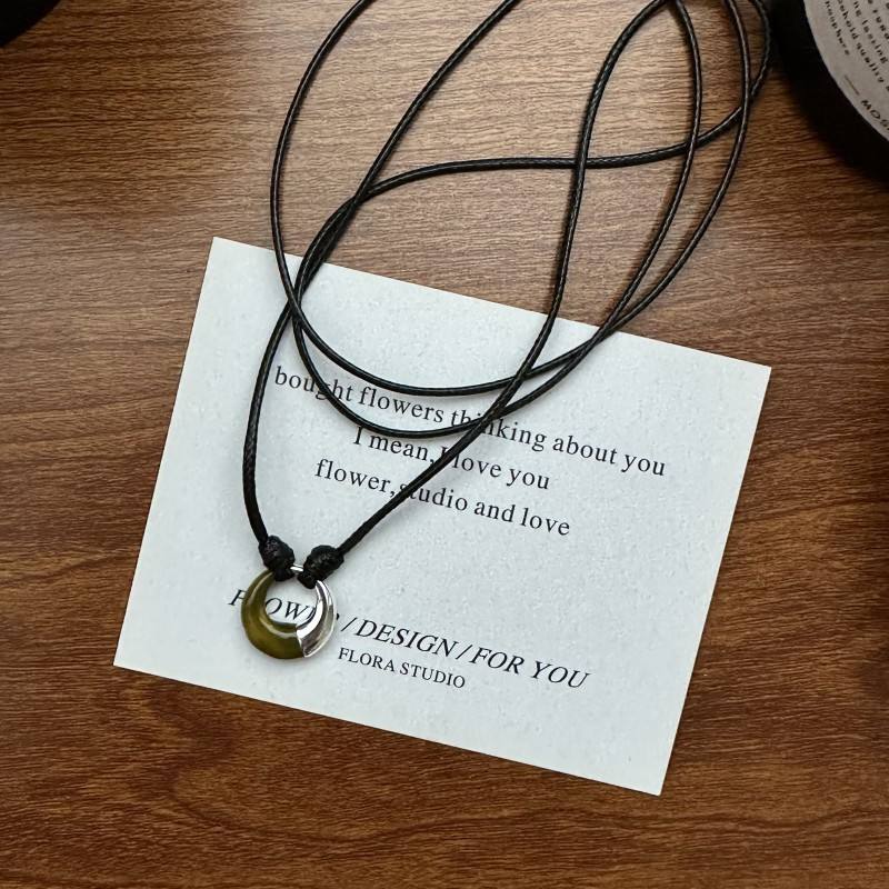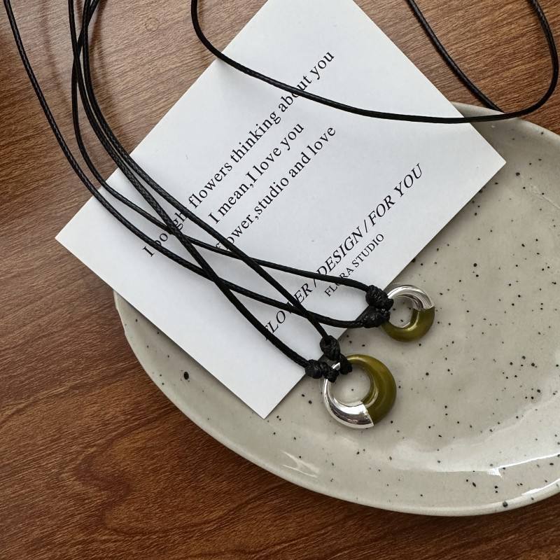 S925 argent Sterling fait à la main printemps été goutte d'huile beignet Long collier en cuir corde Version coréenne mode pendentif colliers
