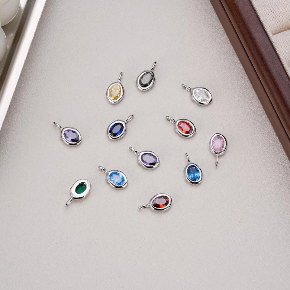 S925 argent Sterling haut de gamme bijoux à bricoler soi-même accessoires 12 pierre de naissance chanceux Zircon pendentif coloré charme beaux pendentifs