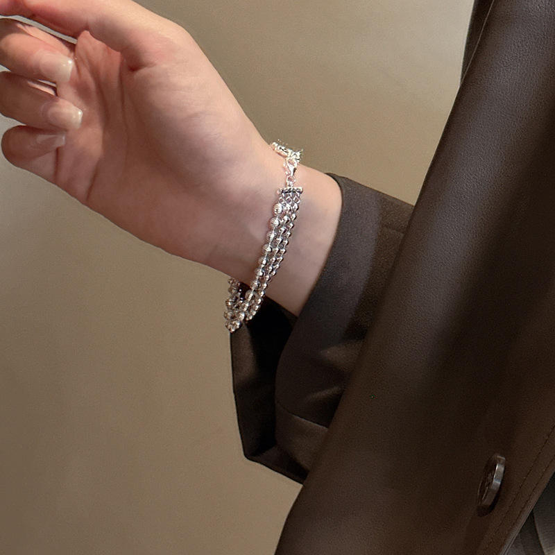 S925 Sterling Silver Version coréenne Bracelet Flash à trois couches Simple Personnalité Texture Mode Wrap Bijoux