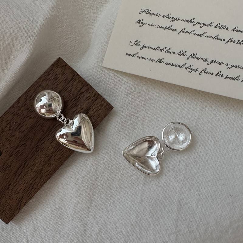 S925 Sterling Silver Love Ball Earrings Korean Version Niche Design Simple Retro Style Fashion Accessory