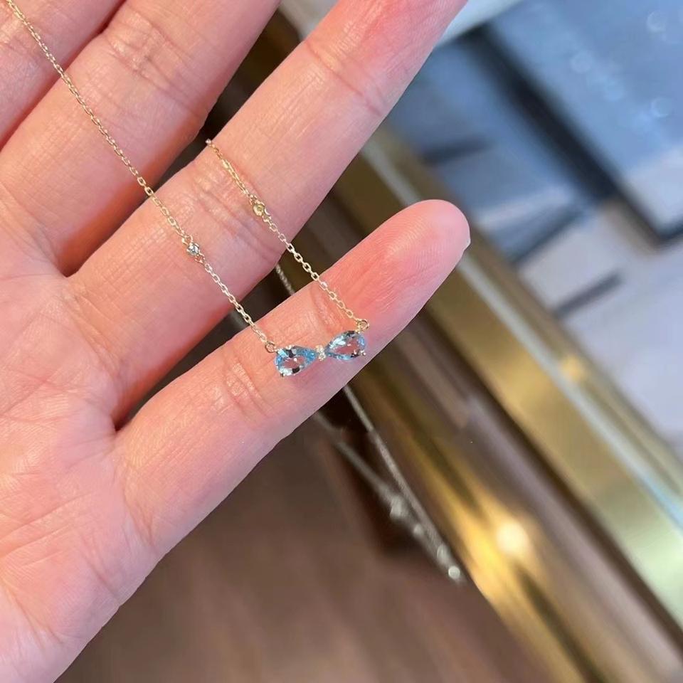 S925 Sterling Silver Mini Sparkling Diamond Pendant Necklace Navy Blue Versatile for Women Exquisite White Gold