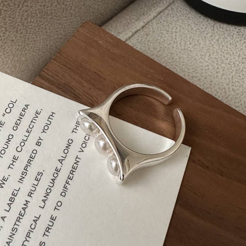 S925 Sterling Silver Plated Niche Design Pearl Ring Women's Adjustable Korean Version Fashion Basic Simple Retro Style Wholesale