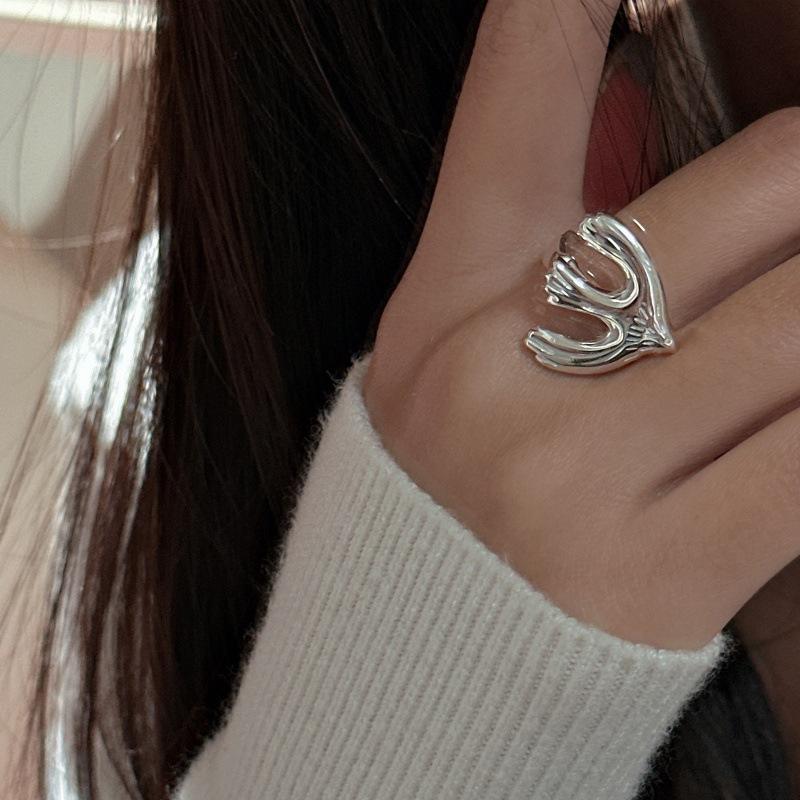 S925 Sterling Silver Plated Peace Pigeon Ring for Women Romantic Korean Version Niche Design Trendy INS Blogger Style Inlay