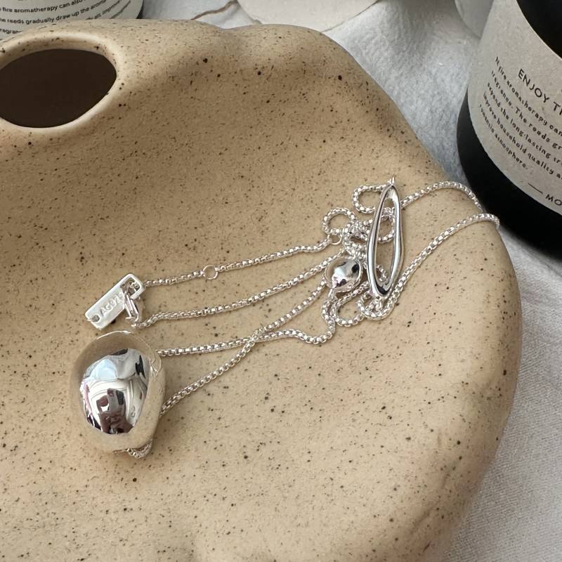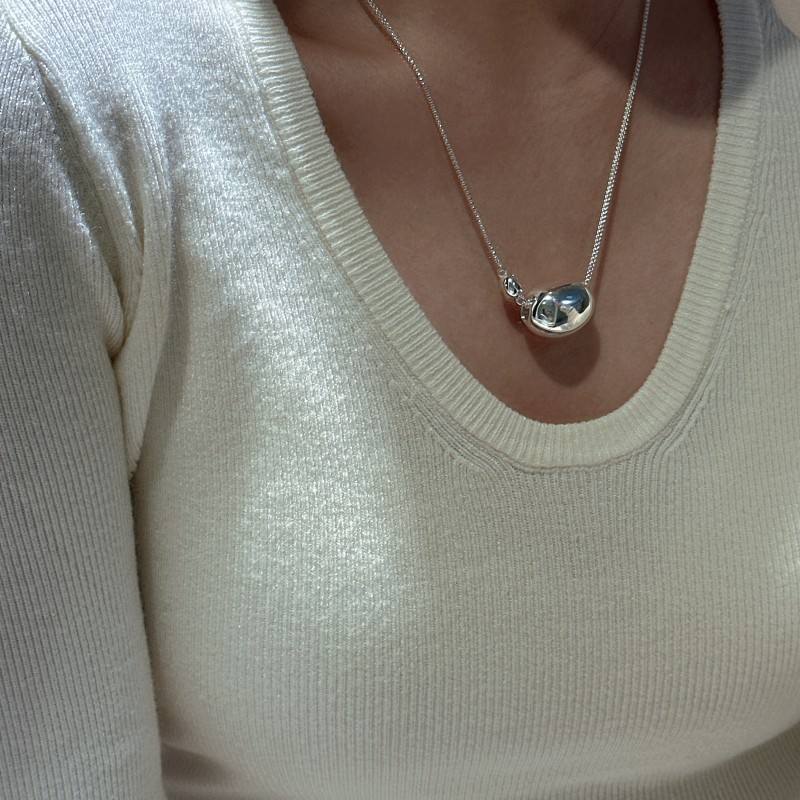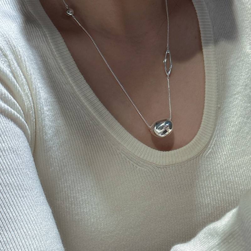 S925 argent Sterling rétro Simple mode haricot collier coréen niche conception longue chaîne de chandail en gros couches colliers