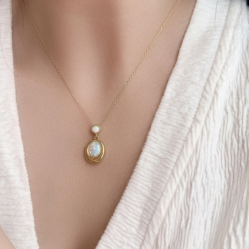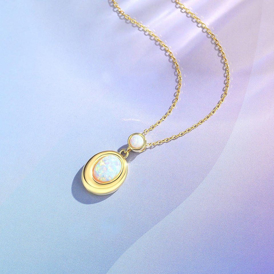 Collier pendentif de mariage minimaliste et délicat en argent sterling S925 plaqué rhodium avec deux opales bleues serties griffe pour femme