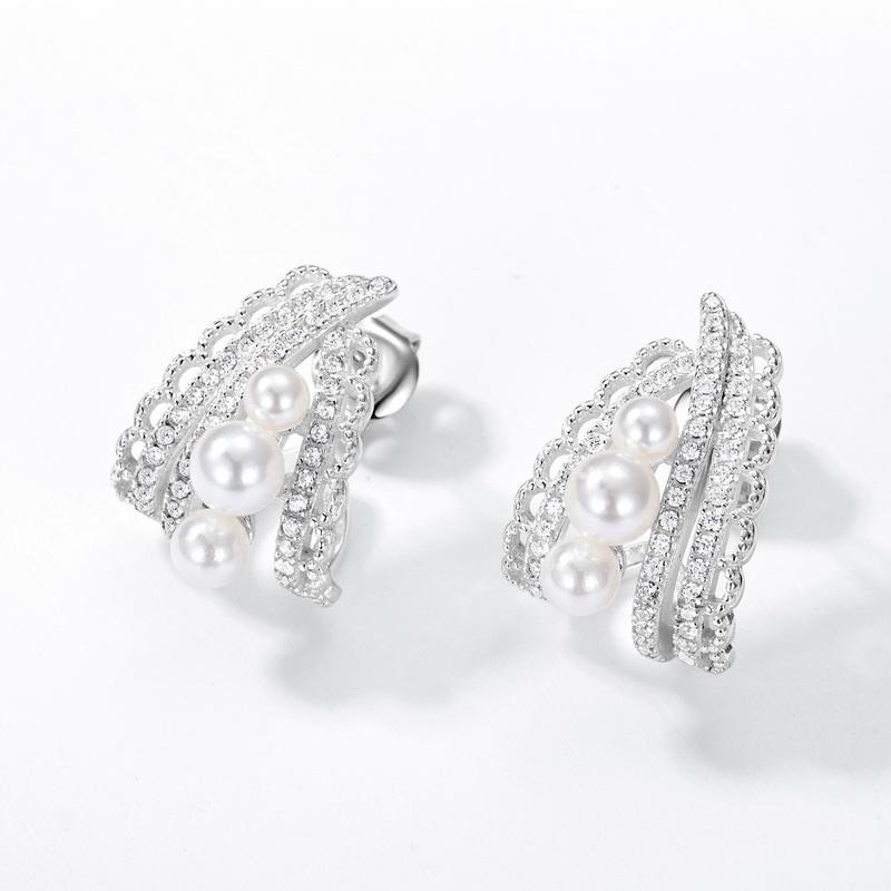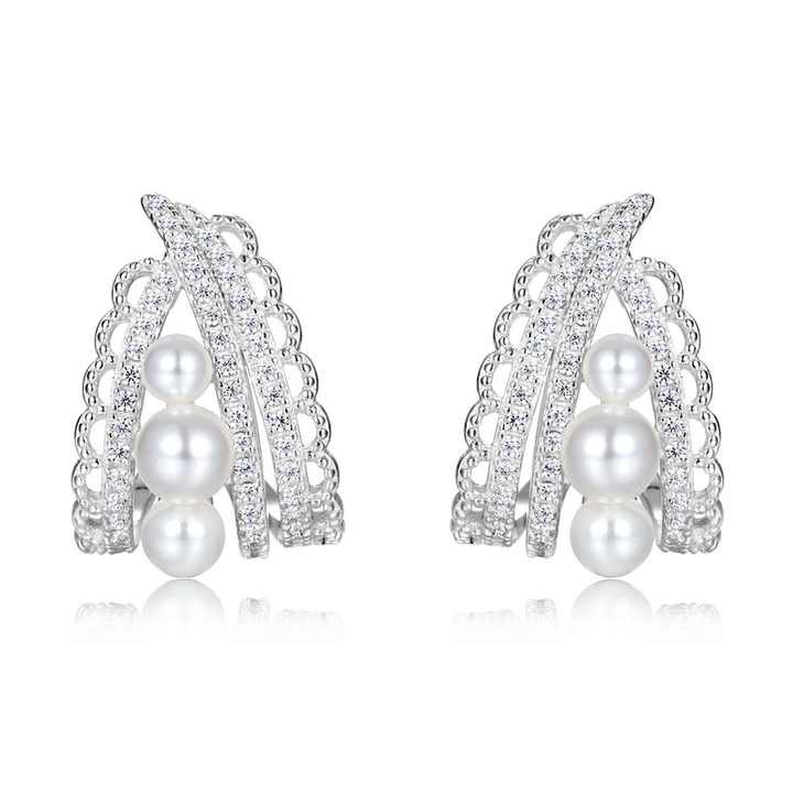 Boucles d'oreilles grimpantes en argent sterling S925 avec grappe de perles coquillages et accent CZ, style vintage, filigrane dentelle, pour mariée, pour femme