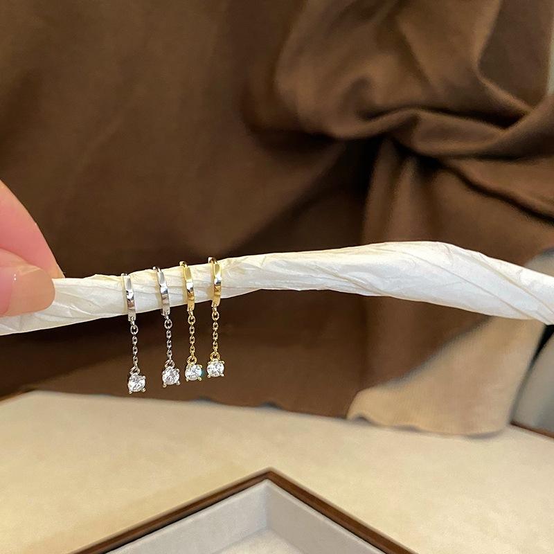 Boucles d'oreilles pendantes en argent sterling S925 avec un seul diamant, pendentif en zircon étincelant, petite taille, idée cadeau exquise