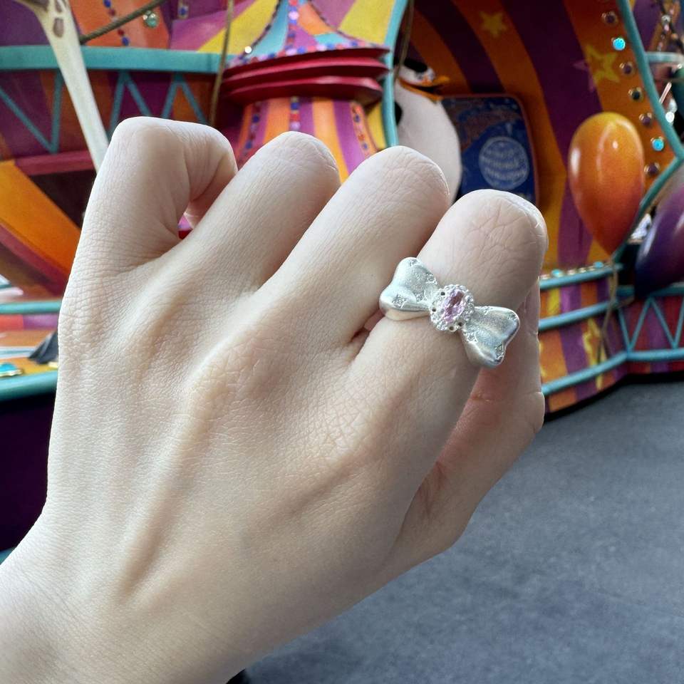 S925 Sterling Silver Sweetheart Princess Peach Pink Diamond Bow Star Ring Niche Design Matte Sweet Opening Fashion Rings