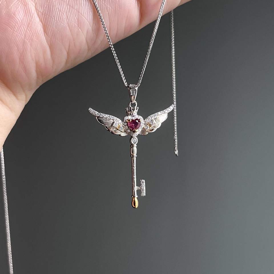 S925 Sterling Silver Women's Heart-Shaped Lava Lock Necklace Irregular Texture Colorful Dopamine Ice Fashion Pendants Charms