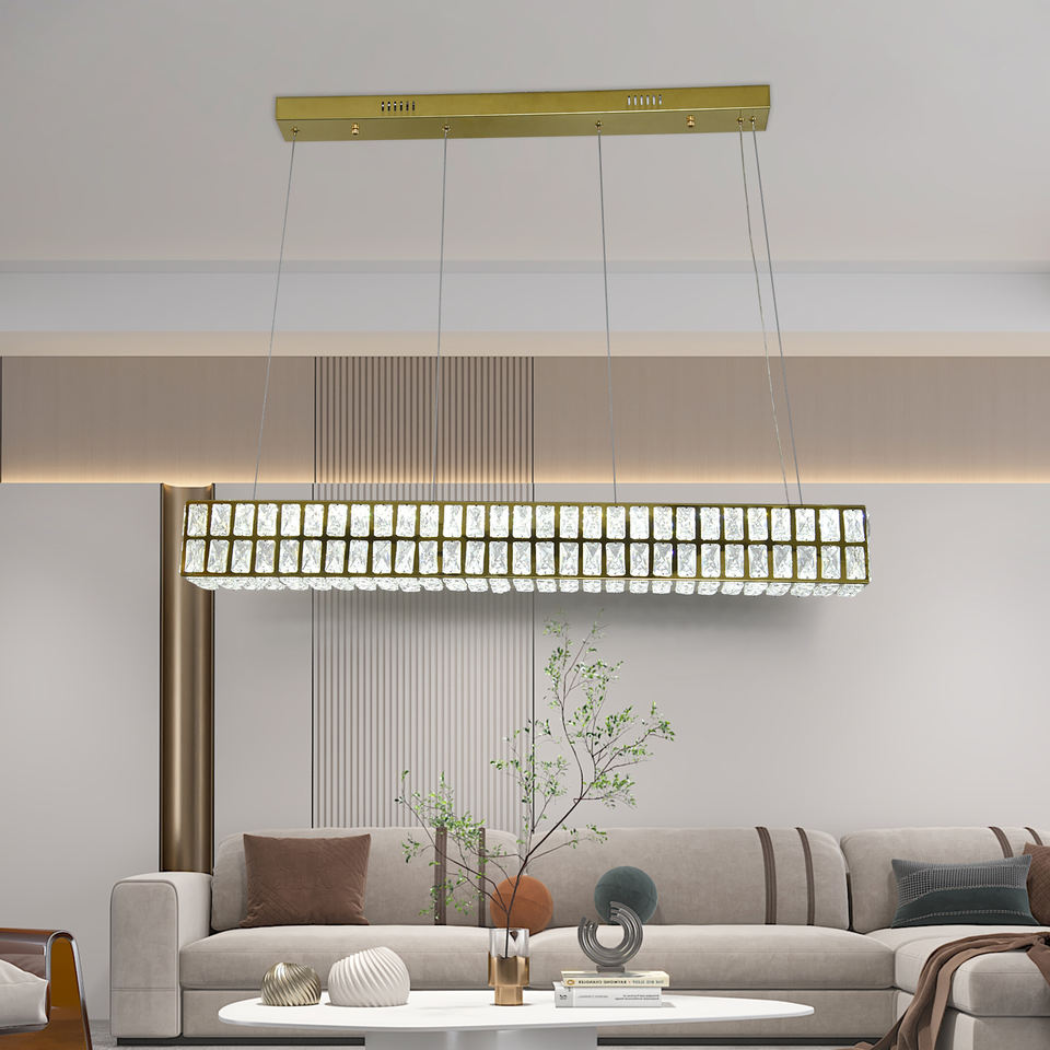 Lustre en cristal doré long certifié SAA pour restaurant et bar, 80 W, éclairage pour l'Australie