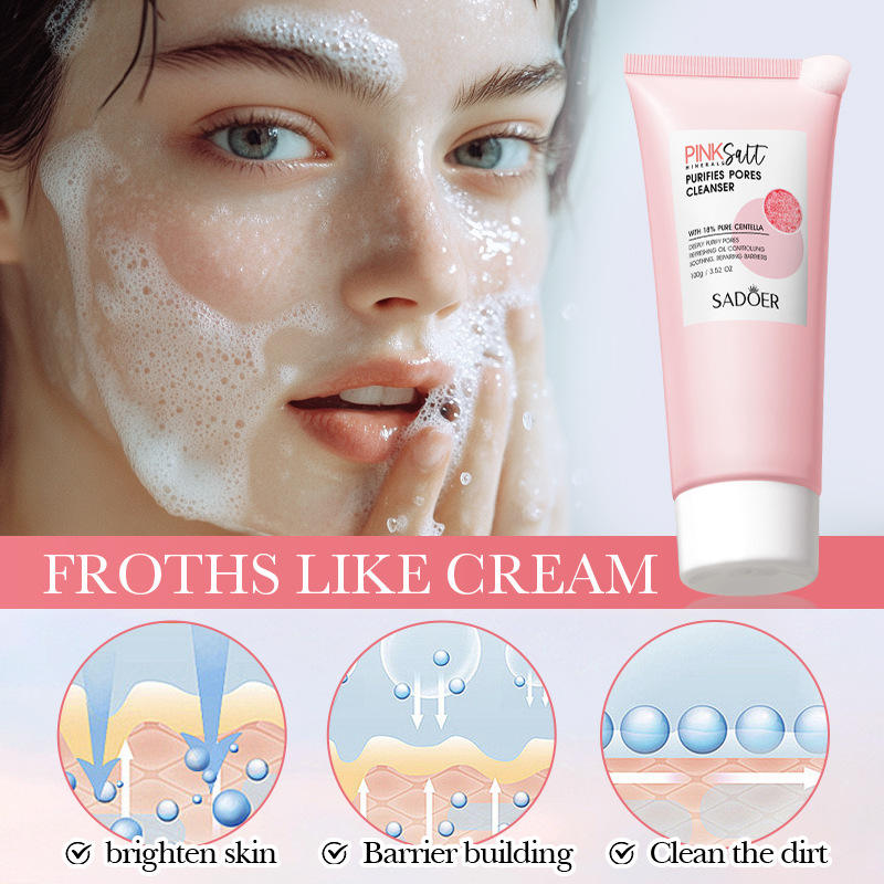Nettoyant visage SADOER, nettoyage en profondeur, lissage, réparation, contrôle du sébum, réduction des pores, nettoyant visage au sel rose de l'Himalaya