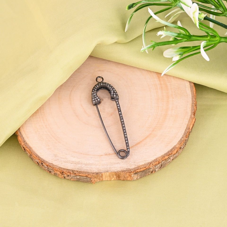 Épingle de sûreté avec diamant pavé, argent sterling 925 naturel, fait main, fermoir à homard vintage, 53 mm