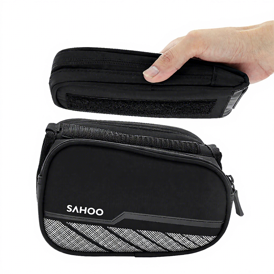 SAHOO Sacoche de téléphone pour cadre de vélo à écran tactile 1,8 L, sacoche de smartphone pour cadre avant, sangle Velcro amovible OEM pour maintien du téléphone