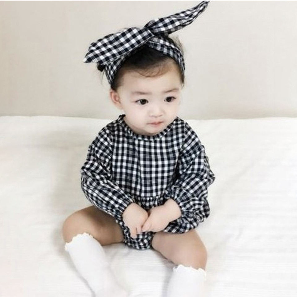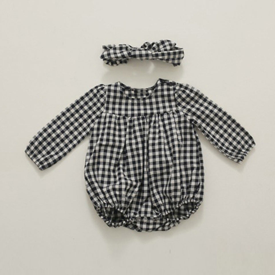SALUTE SFS025 Ensemble barboteuse et casquette à manches longues pour bébés filles 100% coton MonoCheck Design