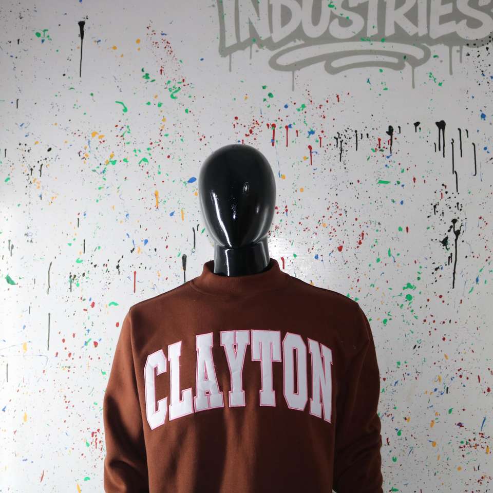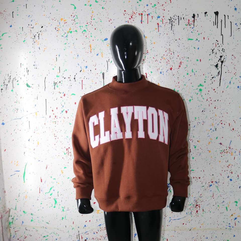 Sweat-shirt à col montant CLAYTON BROWN BLANC avec broderie appliquée, col large, URBAN PRODUCTIONS