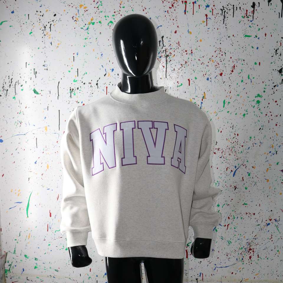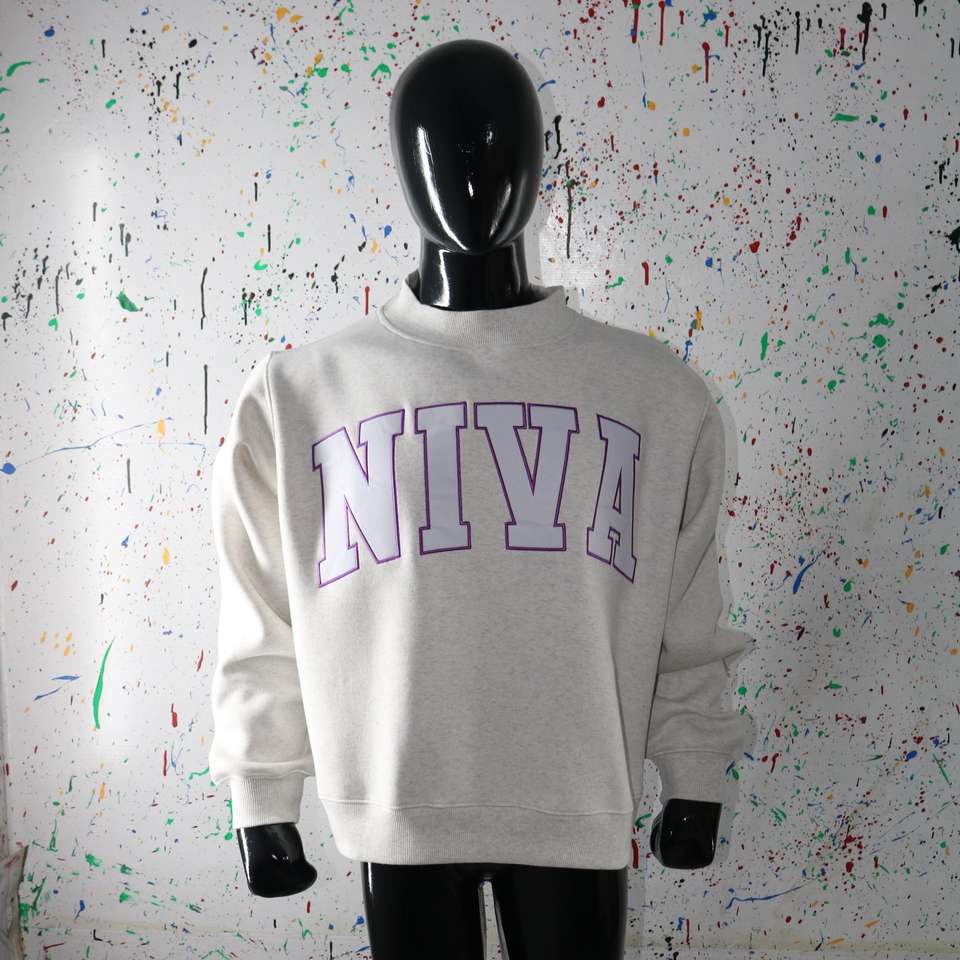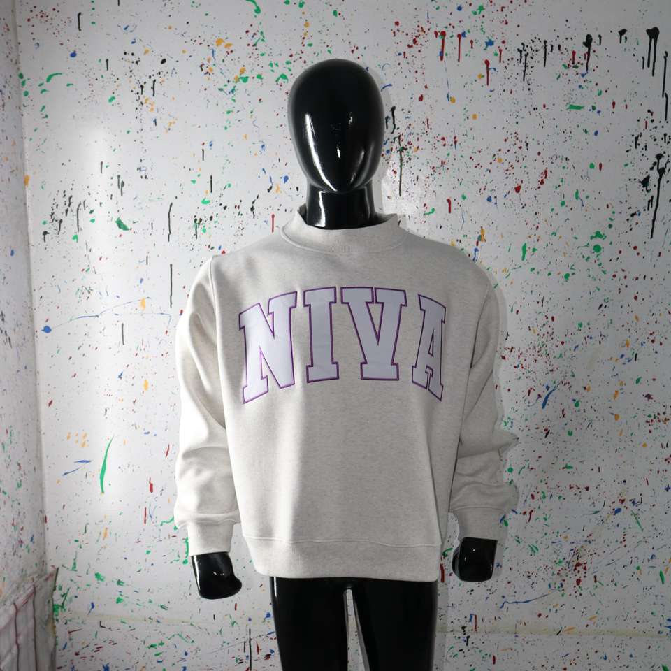 Sweat-shirt à col montant gris cendré NIVA avec broderie appliquée blanche, col large, URBAN PRODUCTIONS