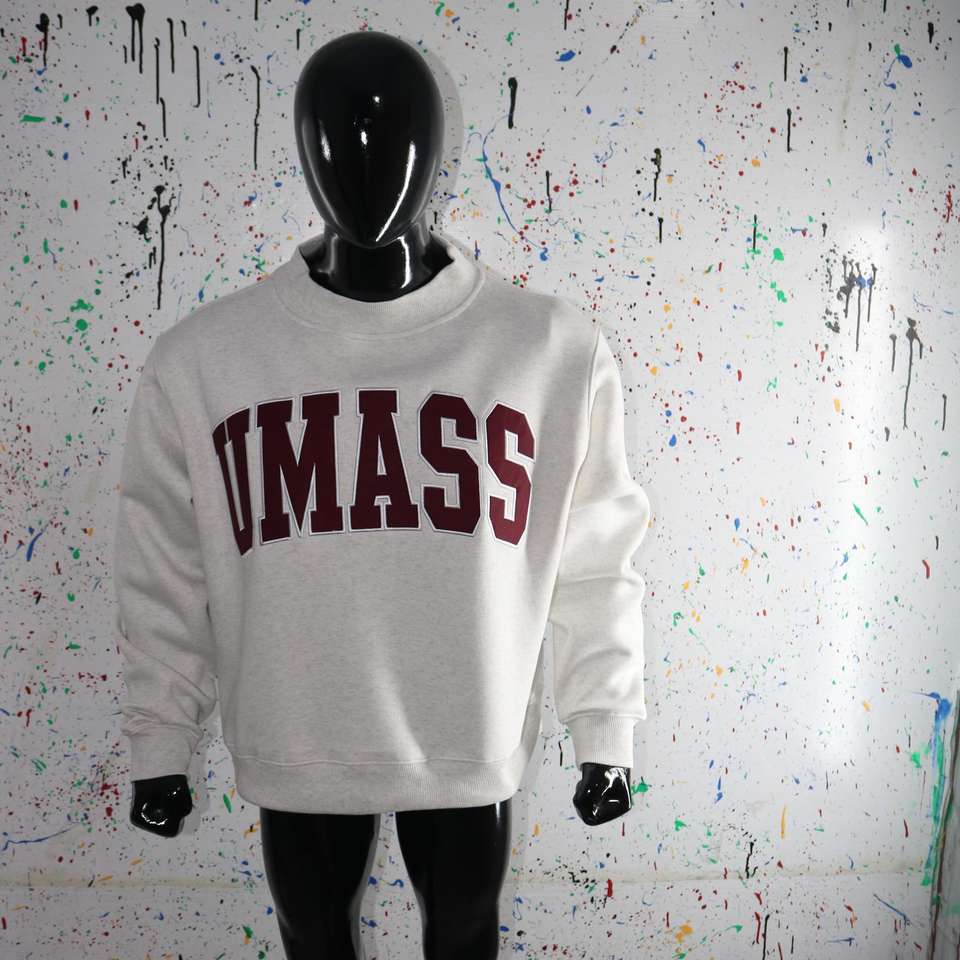 Sweat-shirt à col montant gris cendré UMASS, sweat-shirt à col large avec broderie appliquée marron, URBAN PRODUCTIONS