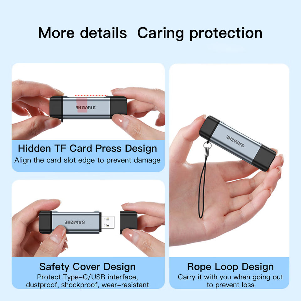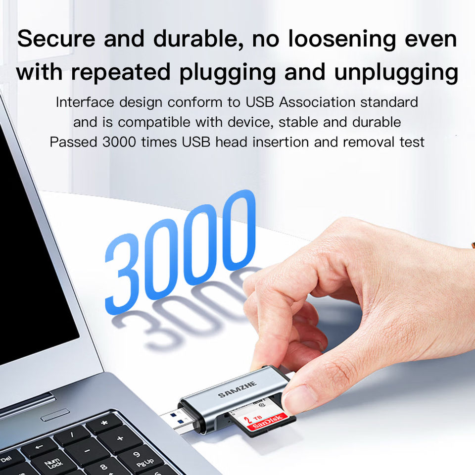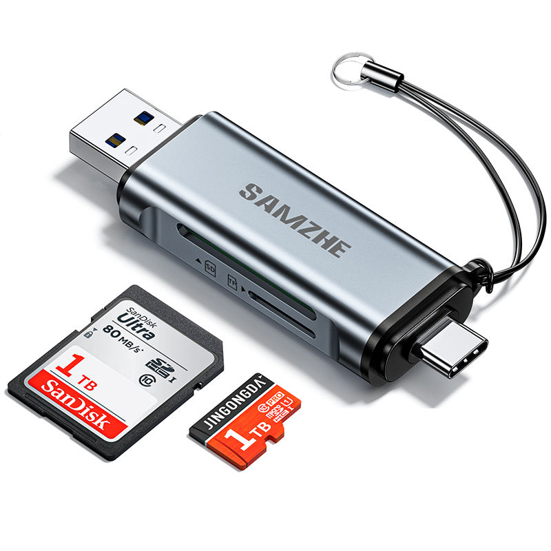 Lecteur de cartes SAMZHE USB 3.2/Type-C double SD/TF pour enregistrement automobile, caméra, ordinateur, iPad, iPhone 17/16/15, DJI Pocket