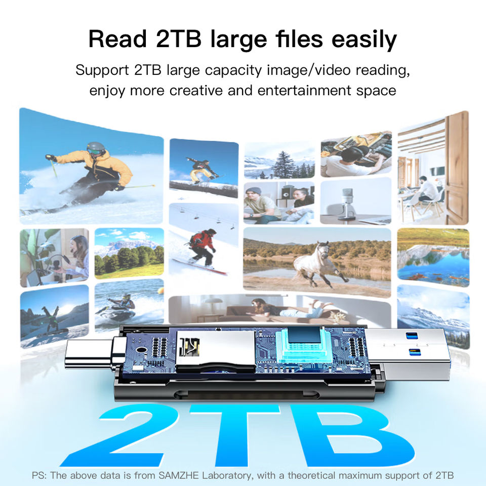 Lecteur de cartes haute vitesse USB/Type-C SAMZHE, double lecteur de cartes SD/TF, USB-C, PC, tablette, téléphone portable, Apple 15/16, DJI Pocket3, caméra sportive, Vlog