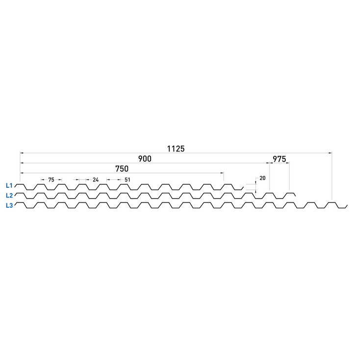 Useful width:900 mm (for roofing) / 975 mm (for cladding/facade)