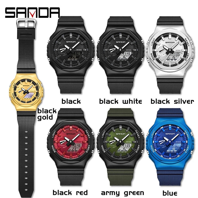 Montre numérique LED de luxe pour homme SANDA 3167, étanche 50M, montre-bracelet sport à quartz avec alarme, design antique