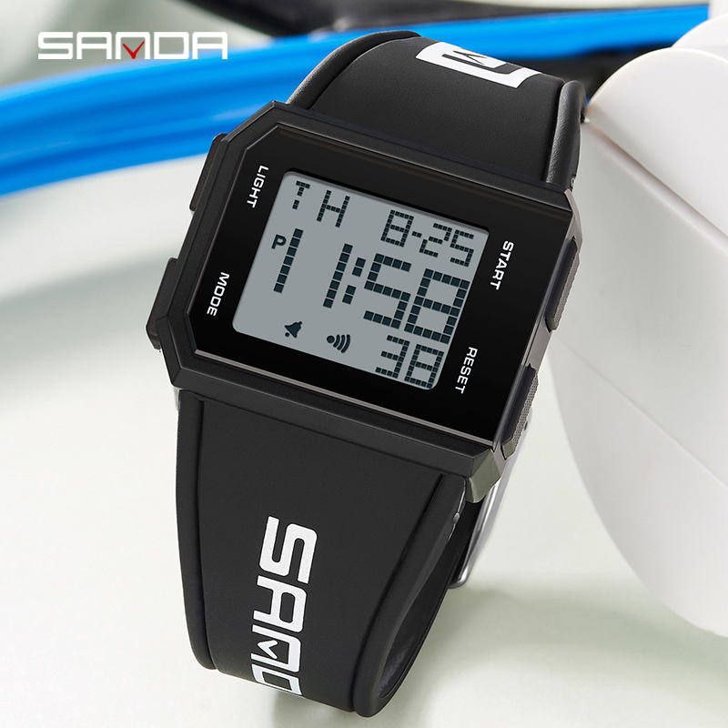 Montre numérique LED sportive pour homme SANDA 9003, boîtier carré, alarme, bracelet en silicone, étanche