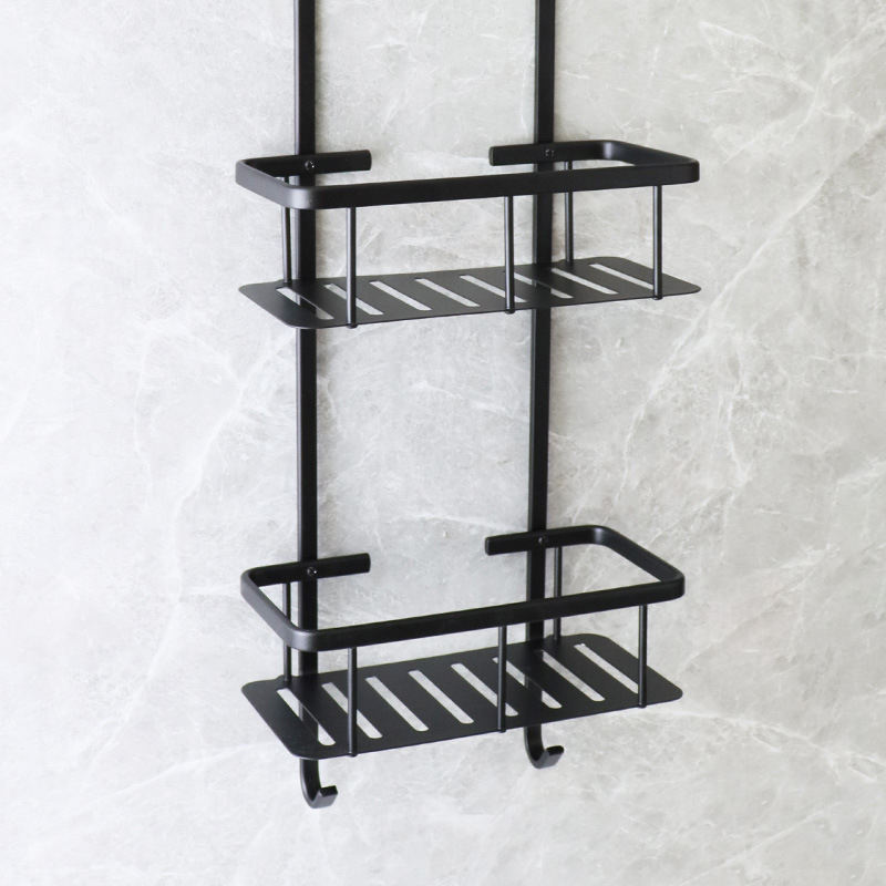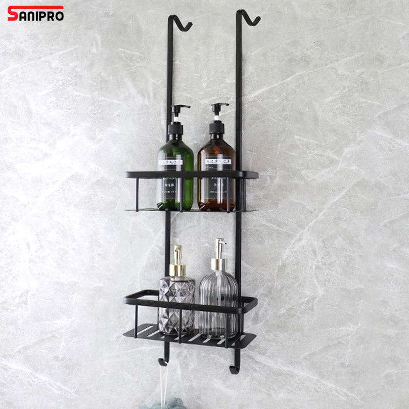 SANIPRO prix usine étagère de salle de bain en aluminium noir mat sans perçage suspendu sur le support de rangement de porte de salle de douche