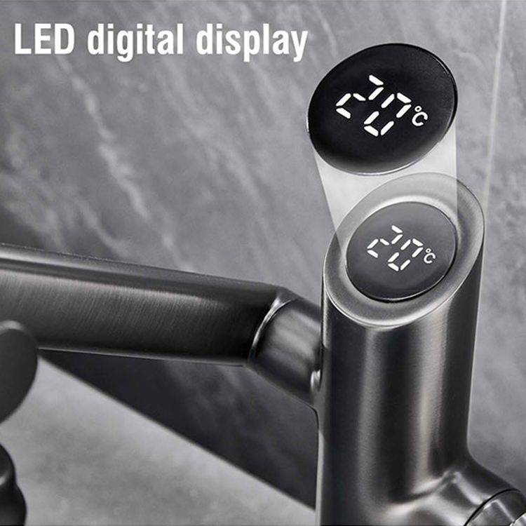 Robinet de lavabo mécanique multifonctionnel SANIPRO avec affichage numérique LED intelligent, rotation libre, robinets de lavabo