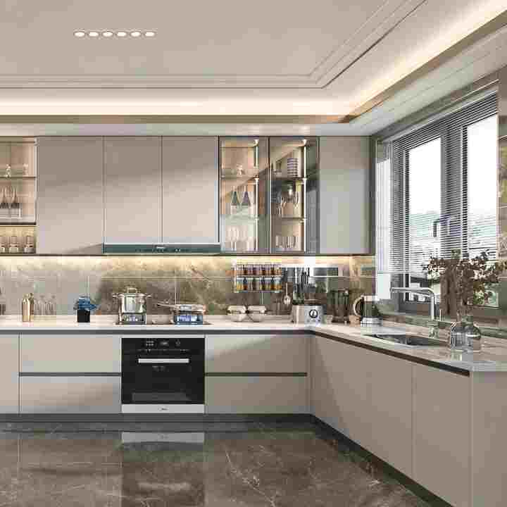 Accessoires:Dosseret, Tiroir panier, Coulisse, Robinet, Poignée et bouton, Charnière, Stockage à plateau tournant, Boîtes de riz, Cabinet de base d'évier, Coup de pied, Conteneur de déchets