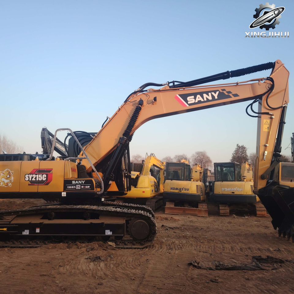 Excavatrice sur chenilles d'occasion SANY 215, marque japonaise d'origine, 21,5 tonnes, taille moyenne, excavatrice sur chenilles d'occasion