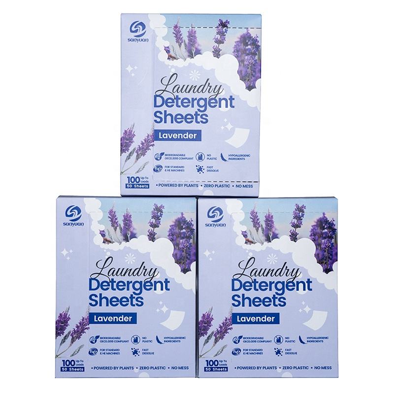 SANYUAN Dissolvable Eco Friendly Lavender Scent Biodegradable Laundry Detergent Strips & Sheets for Bathroom Use