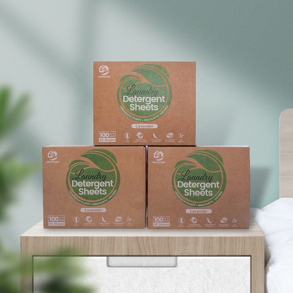SANYUAN Eco-Friendly Disposable Hypoallergenic Baby Laundry Detergent Sheets with Lavender Fragrance No Plastic Packaging