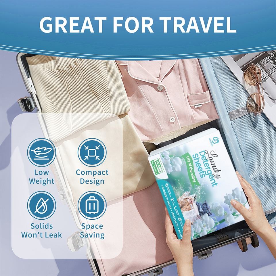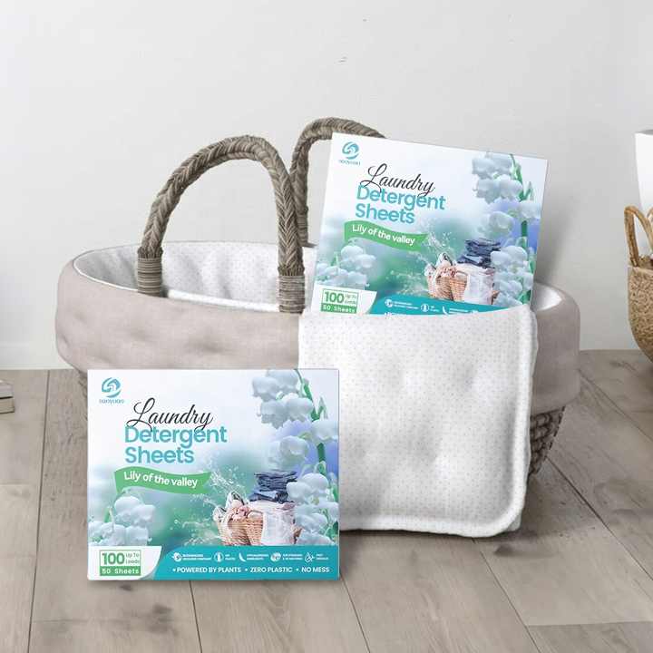 SANYUAN Eco Friendly Sustainable Hypoallergenic Super Concentrated Laundry Detergent Sheets with Low Foam Lily Valley Scent