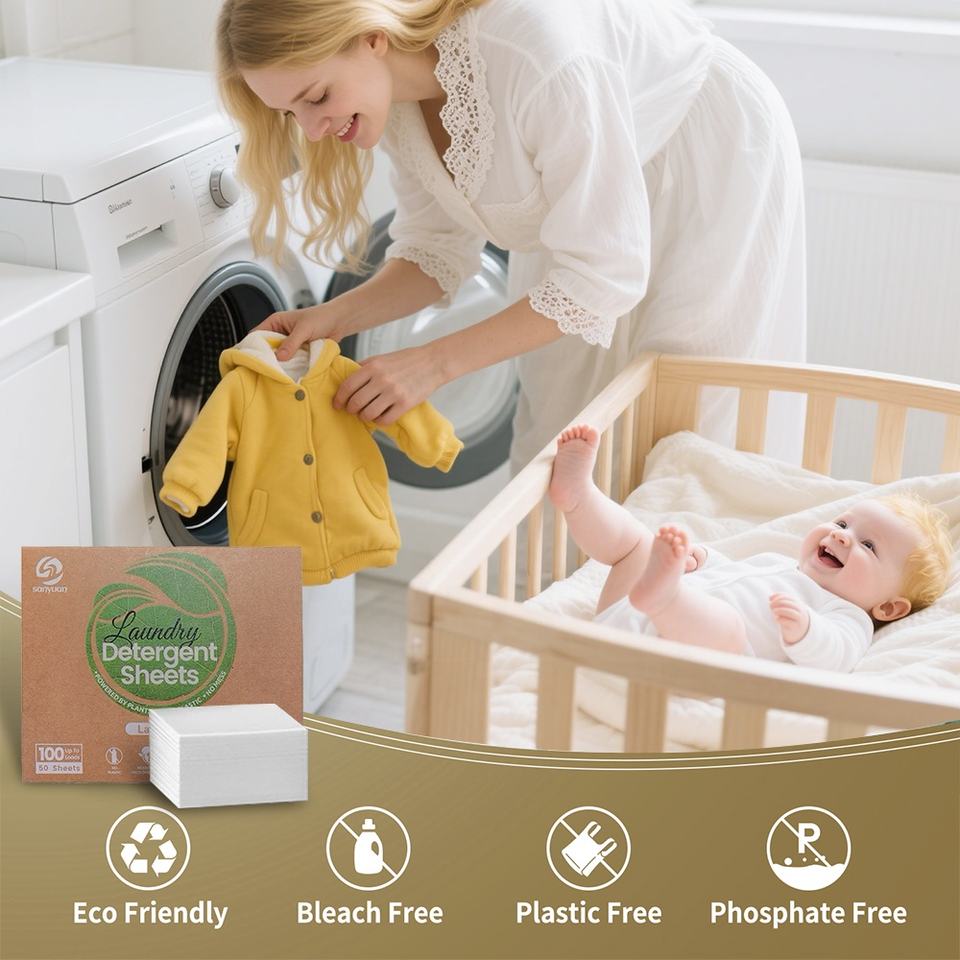 SANYUAN Prix d'usine Design simple Sans plastique Écologique Feuilles de lessive en gros Détergent à lessive manuel en feuilles
