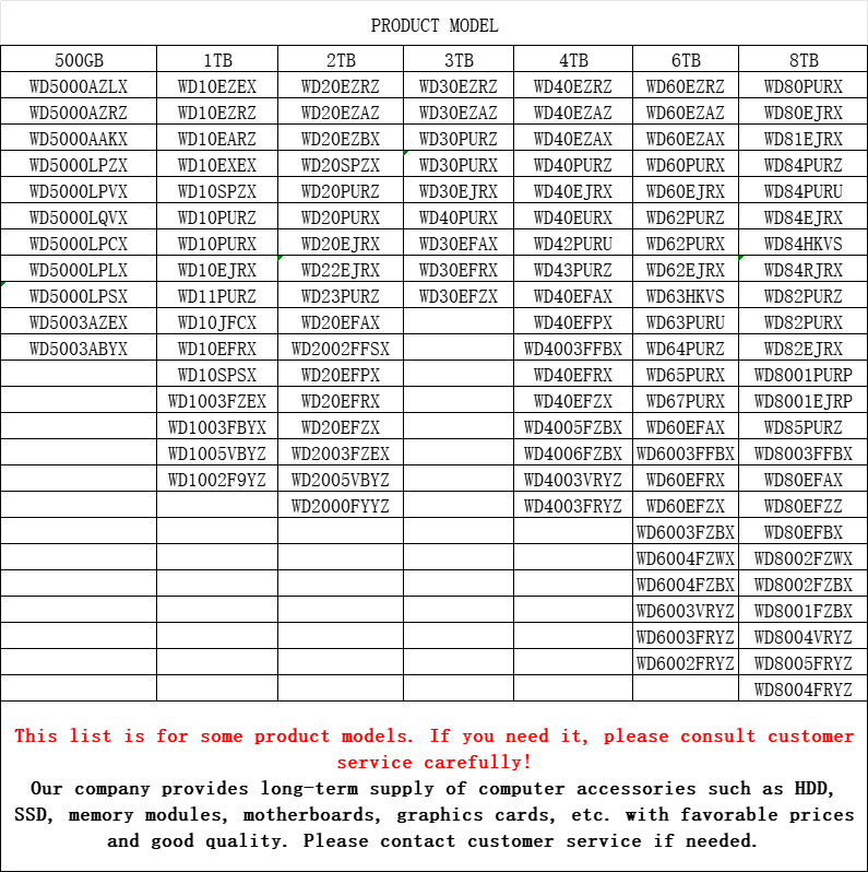 WD5003ABYX, WD5003AZEX, WD20EZAZ, WD20EZRZ, WD20SPZX, WD20EZBX, WD40EFPX, WD40EFAX, WD5000LPCX, WD5000LQVX, WD5000LPSX, WD5000LPLX, WD1002F9YZ, WD42PURU, WD1005VBYZ, WD40EURX, WD5000AZRZ, WD5000AZLX, WD43PURZ, WD5000LPZX, WD5000AAKX, WD5000LPVX, WD30EFRX, WD40EZRZ, WD30EFZX, WD10EFRX, WD40EZAX, WD40EZAZ, WD1003FBYX, WD40EJRX, WD1003FZEX, WD40PURZ, WD30EJRX, WD30PURX, WD30EFAX, WD40PURX, WD10PURZ, WD10PURX, WD10EJRX, WD2005VBYZ, WD11PURZ, WD2003FZEX, WD30EZRZ, WD2000FYYZ, WD30PURZ, WD30EZAZ, WD101FZBX, WD10EZRZ, WD10EARZ, WD10EXEX, WD2002FFSX, WD20EFAX, WD20EFRX, WD20EFPX, WD20EFZX, WD20PURZ, WD20EJRX, WD20PURX, WD23PURZ, WD22EJRX
